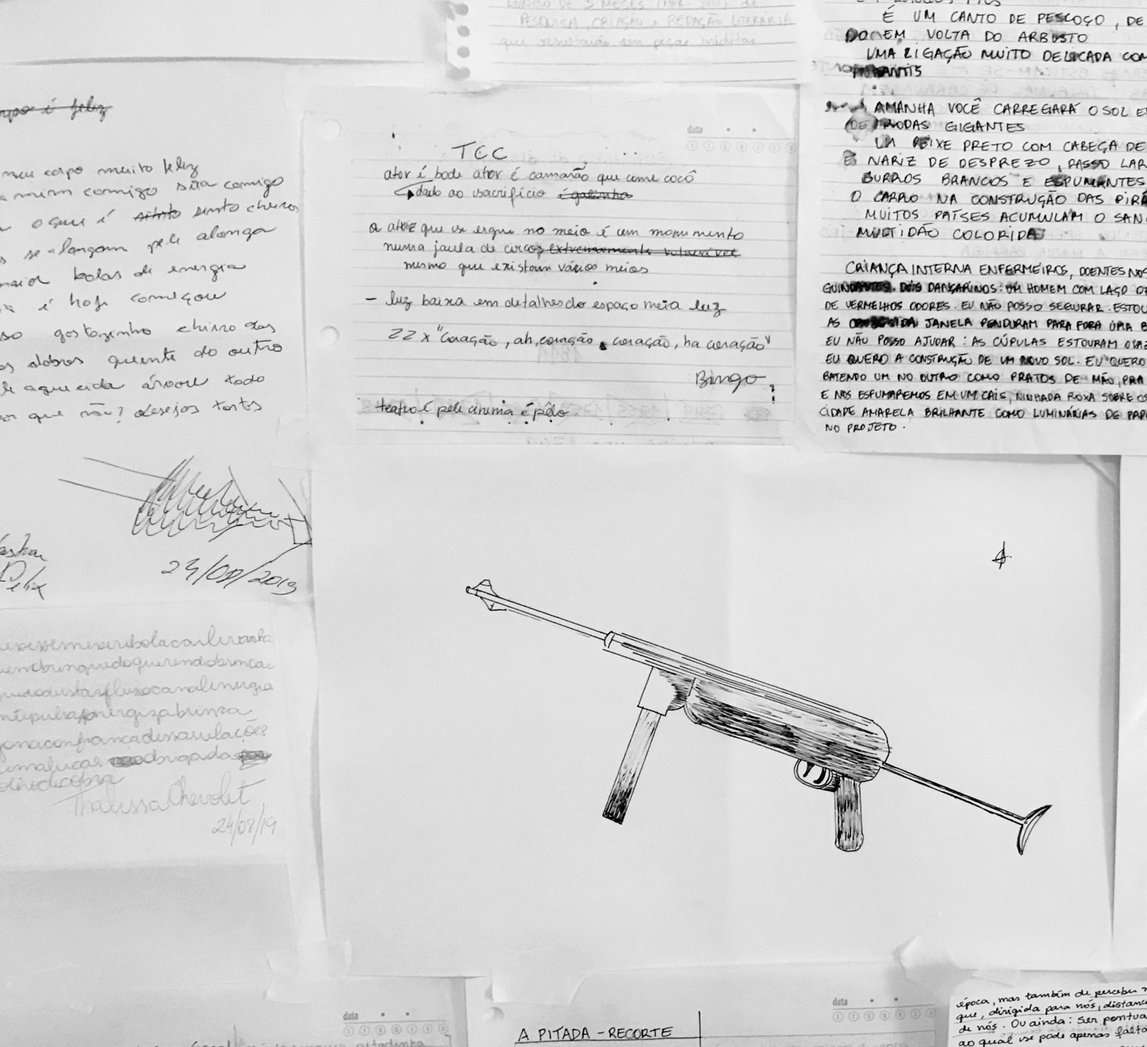 A cabareturgia, também assinada pela Thiré, é uma colagem feita a partir de mil coisas, como poemas, listas e títulos variados, descrições de performances, documentos históricos, ditados populares, letras de músicas e anotações dos artistas envolvidos.
