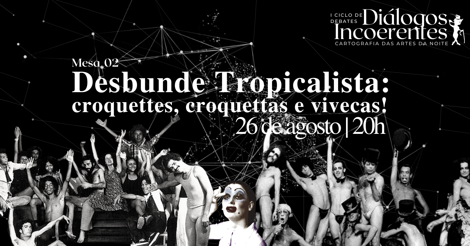 Dando continuidade ao nosso imperdível ciclo de debates Diálogos Incoerentes: cartografia das Artes da Noite, é com alegria que anunciamos a segunda mesa, que contará com representantes dos Dzi Croquettes e das Dzi Croquettas, e do Vivencial Diversiones!